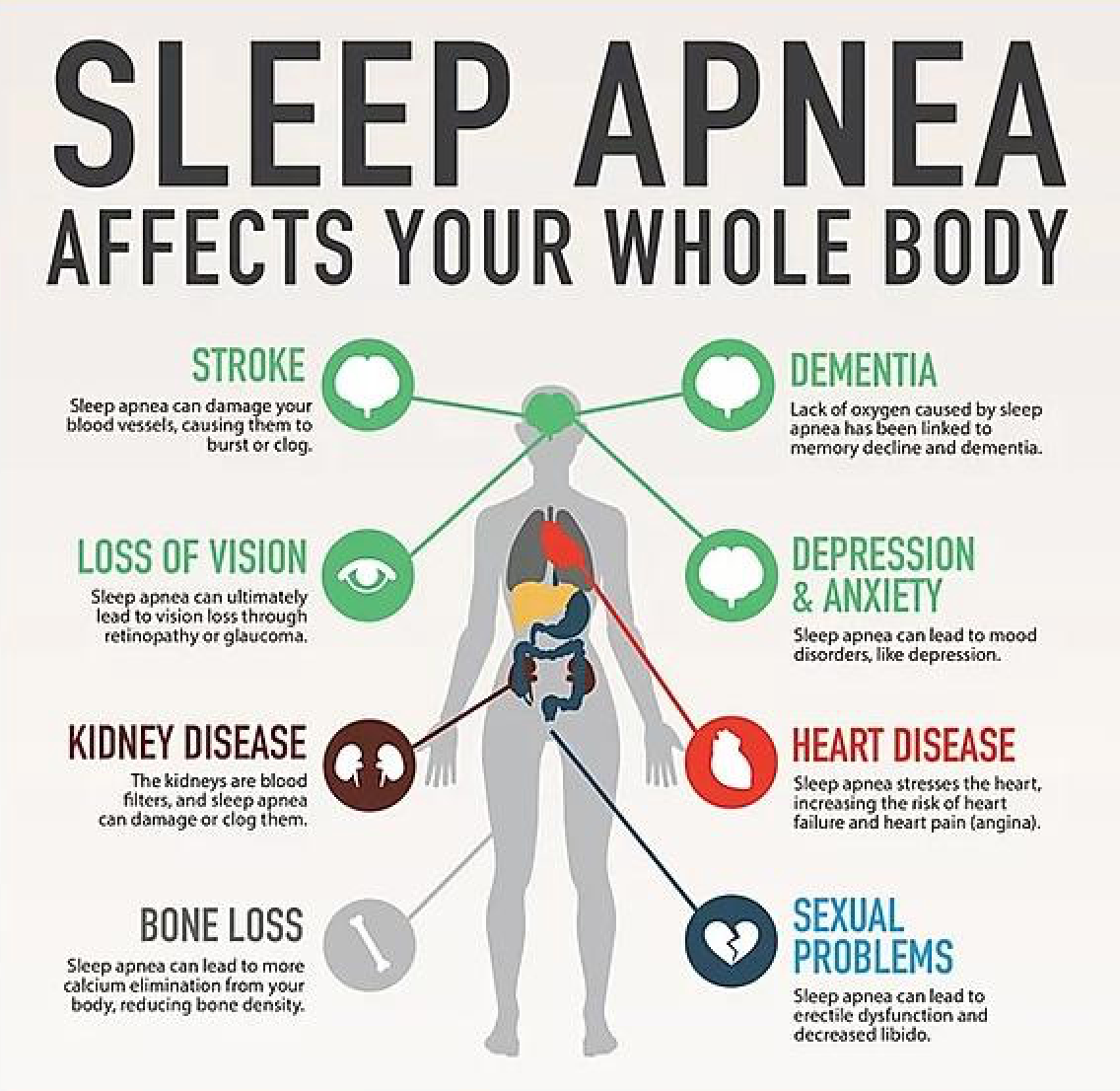 This happens when there is an obstruction or blockage of the airway as well as brain stops sending signals to the chest muscles. This may be due to underlying health conditions, alcohol use, smoking, use of certain medications.